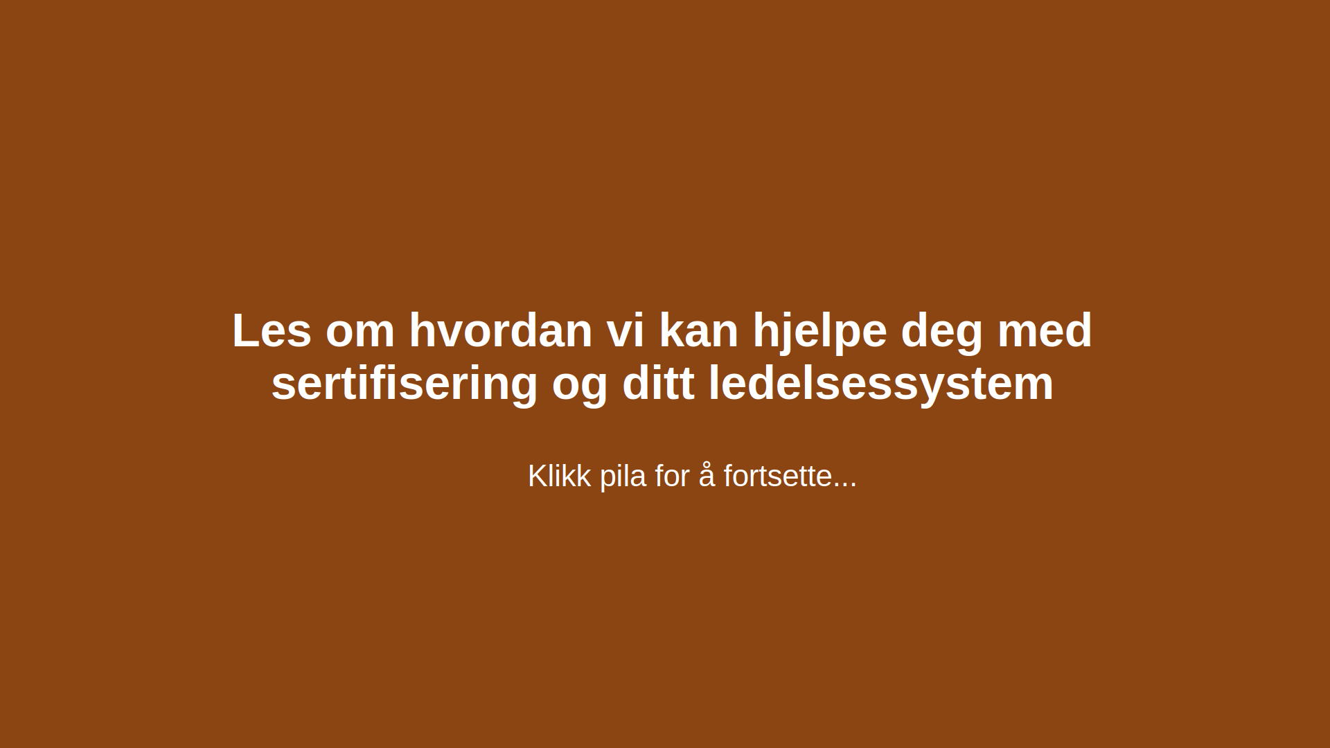 Vi leverer kvalitet i alle faser – fra forberedelser til gjennomføring og videre oppfølging etter sertifisering. Målet vårt er å være en langsiktig kompetansepartner for ledelsen og virksomheten.